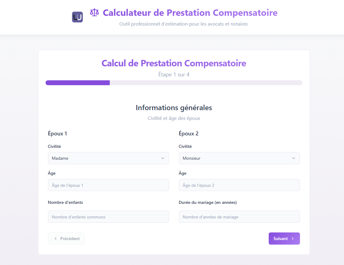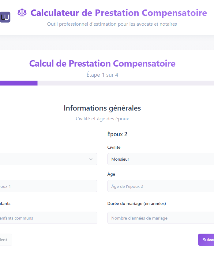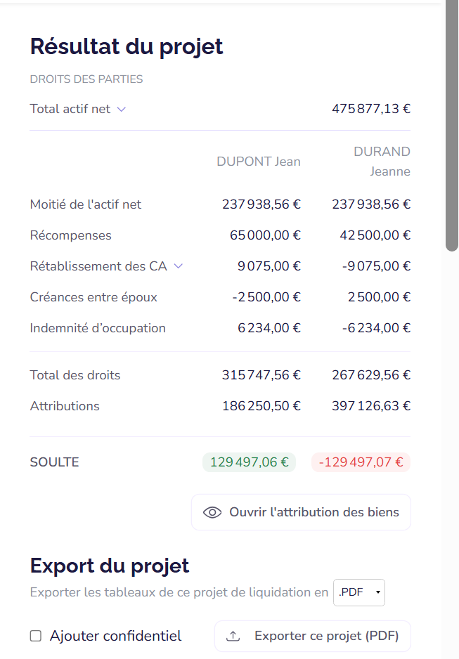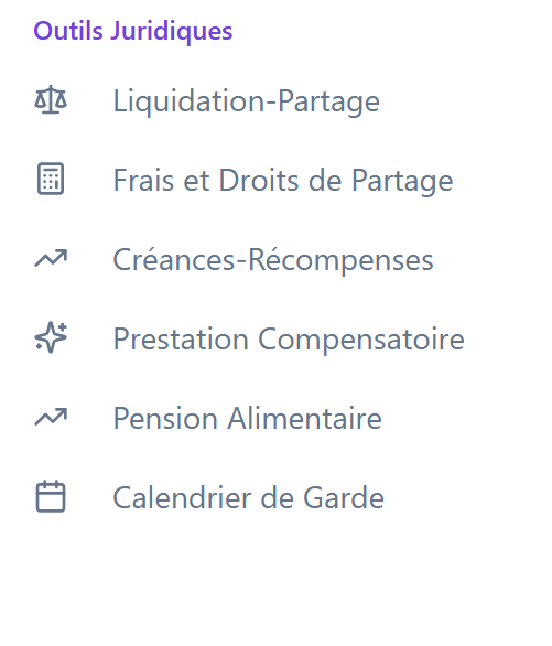 Liquidez un régime matrimonial ou une indivision, calculez une prestation compensatoire, une pension alimentaire, des frais et droits de partage ou une récompense.